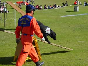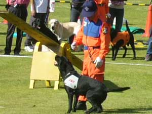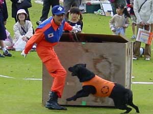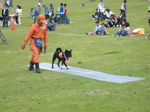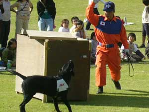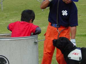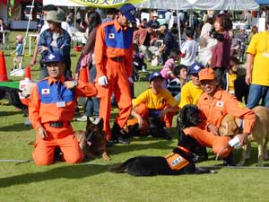 警察犬による犯人捜索訓練や服従訓練・災害救助犬活動・セラピードッグ活動などを紹介しました。