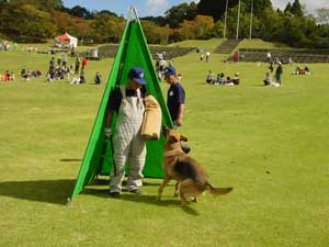 10月19日 晴天の中津幡町森林公園にてふれあいフェスタ’03が行われ、デモンストレーションとして参加しました。