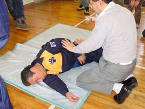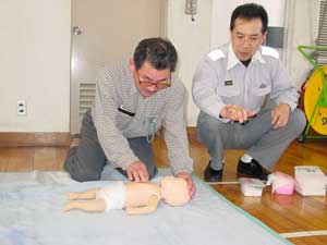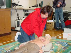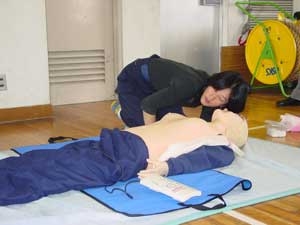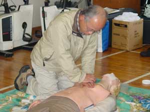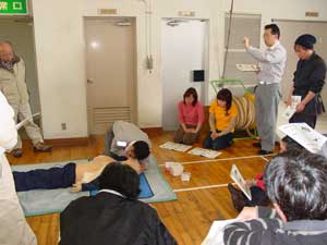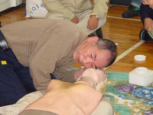 上記講習を受け感じたことは、救急車がくるまでに何らかの処置をするか、しないかで急病人の命が左右される。ということです。特に、死亡率は呼吸が止まってから約10分で50%が死亡、心臓停止後約3分で50%そして、多量出血後約30分で50%という率だそうです。(カーラ−の救命曲線)大切な命を救うために、早い通報→早い応急手当→早い救急処置→早い医療処置の救命の連鎖(Chain of Survival)を迅速に行う重要性と救命技能を維持向上するための努力が必要であると感じました。(高井) |