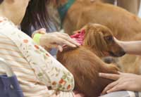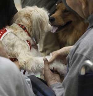 医療機関や老人健康施設、障害をお持ちの方々の施設、および犯罪歴のある人の更正施設など、様々な場所でその改善を目指すために動物達の能力を借りて行う医療・更正行為を動物介在療法(Animal Assisted Therapy:AAT)と呼び、それらを含む動物介在活動を(Animal Assisted Activity:AAA)と、言います。その様々な場所で活躍してくれている犬達はセラピードッグ(Therapy Dog)と呼ばれています。